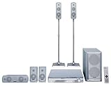 Bring amazingly clear surround sound to your home at an affordable price with the Panasonic SC-HT733 Home Theater System, which features 470 watts of total power output (800 watts peak) and a slim design 5-disc progressive scan DVD player/changer with integrated receiver that measures just 2.7 inches tall. It includes two tower front speakers with height-adjustable stands, two satellite surround speakers, one center channel speaker, and one dual-unit active subwoofer (which has a built-in amplifier). The surround, satellite, and center channel speakers are all magnetically shielded so as not to interfere with your TV's video signal and are wall mountable. This system also features built-in Dolby Digital, DTS, and Dolby Pro Logic II decoders.